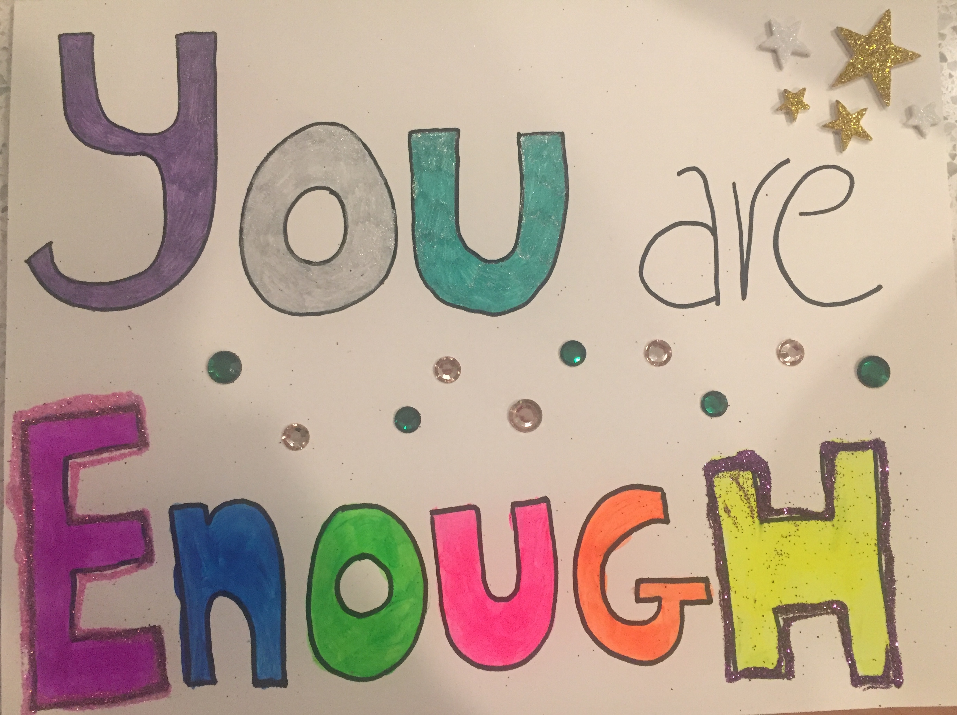 Hope Is a reminder that you are enough. This sign that my friends made at our sign-making is my mantra many days.
